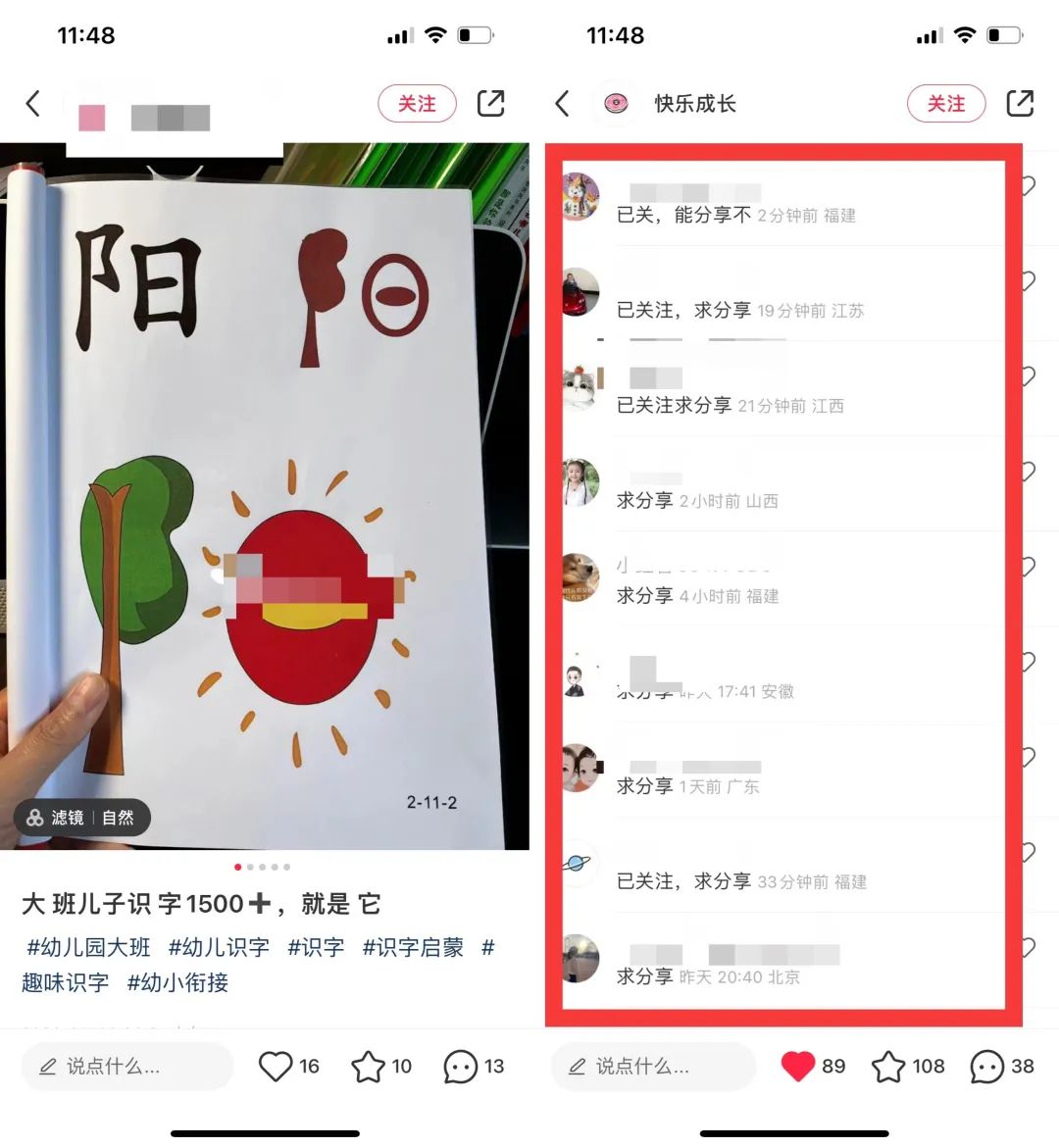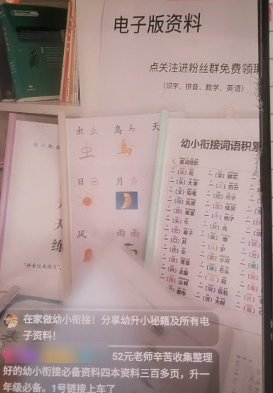 内容很简单,就是一个大字+图片,有点类似于看图识字的放大版,很小众的一个赛道,评论区有很多人在求资料。