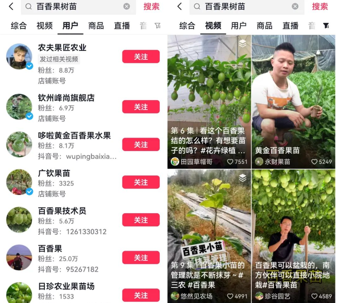 圈内一个好友在做百香果树苗,在抖音平台发布百香果树苗培育,以及跟种植相关的视频获取精准流量,在朋友圈进行转化成交,下面就拆解一下百香果树苗如何做三农账号并实现盈利。