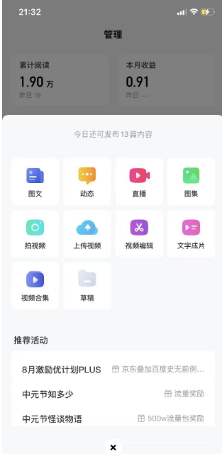 在发布动态时,你可以点击素材库搜索图片。是不是很简单?一两分钟就可以发布一个爆款作品。 百家号每天可以发布15条作品,全部发布成动态,不要转化成视频,因为视频的播放量很低,会浪费发布次数。 最后,我想强调一点,尽管百家号的收益相对较低,但不要花太多时间去寻找文案、伪原创或者剪辑。按照我的方法,复制粘贴即可。 重点分析 每天花半小时将15条作品发布满,每天重复操作,能否爆发就只能听天由命了。 百家号是一个非常适合新手小白的自媒体项目,没有任何门槛。但我不建议花太多时间和精力去操作。还是那句话,做了不一定有,不做肯定没有! 温馨提示: