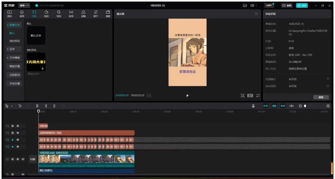 去某音搜索对标账号,寻找数据比较好的作品,复制链接,利用小程序轻抖去水印,把文案提取出来,复制粘贴保存备用,再用免费软件生成配音,把需要的视频配音好,导入剪辑软件,再利用剪辑软件生成字幕。