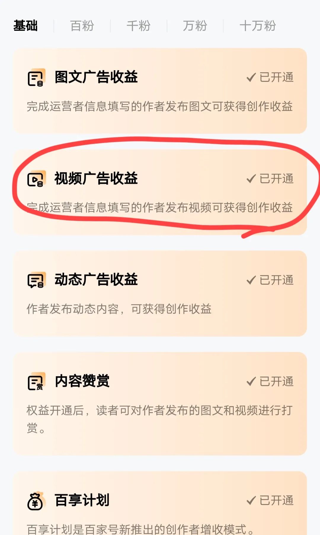 百家号新号就可以开通视频收益,没有粉丝要求。