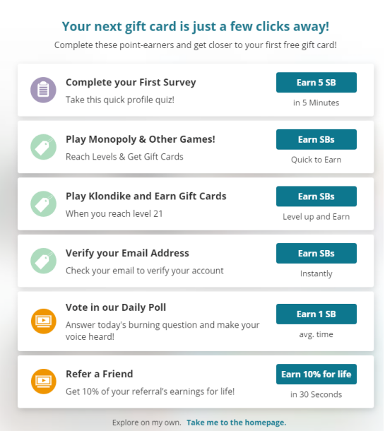 积分兑换:当你的积分累积到一定程度时,就可以去兑换礼品卡了。100SB就能兑换1欧元的礼品卡,500SB起兑。