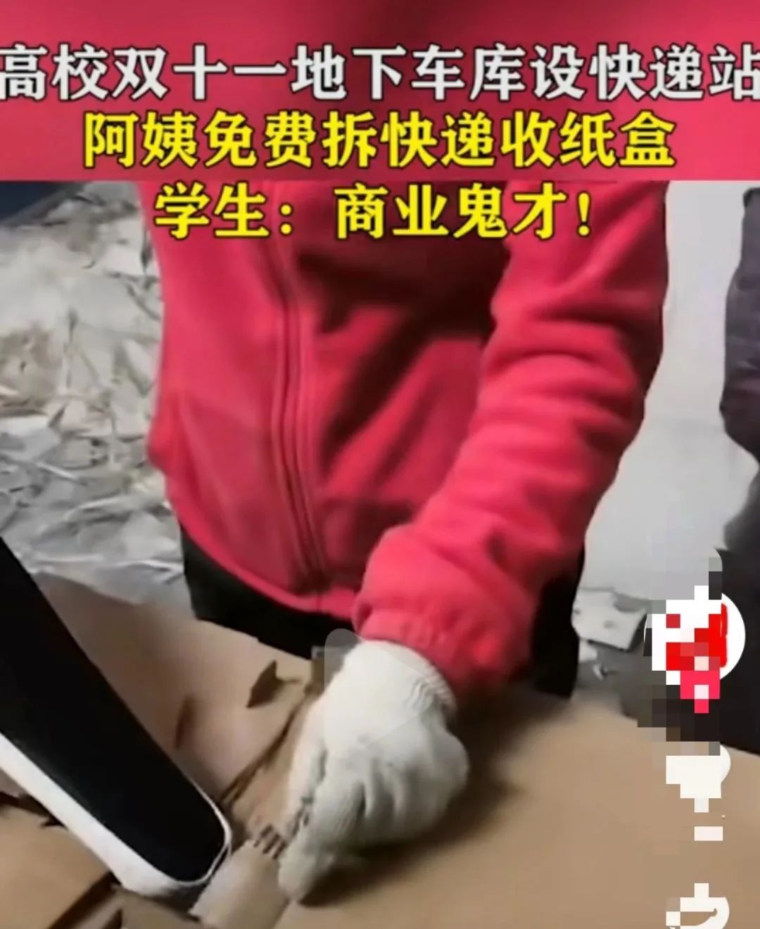 之前有位大妈在某高校地下车库快递站收快递盒子,被学生们称之“商业鬼才”。