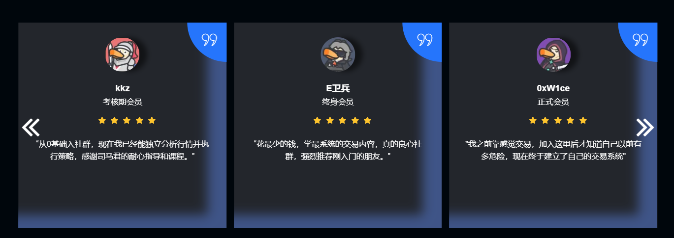 “司马君从不画大饼,一开始就告诉我’学习是个过程’。现在不仅学费早回本了,还建立了自己的交易系统。”