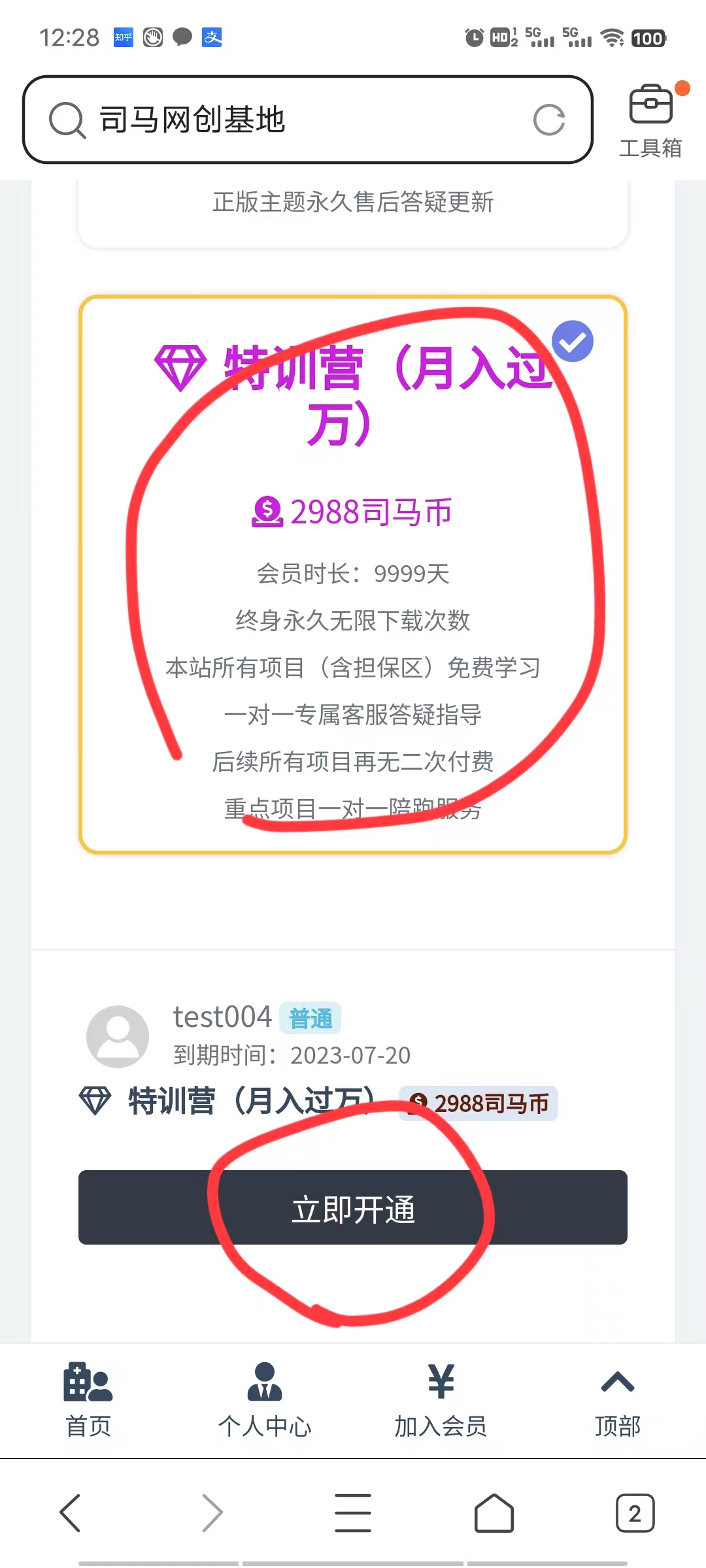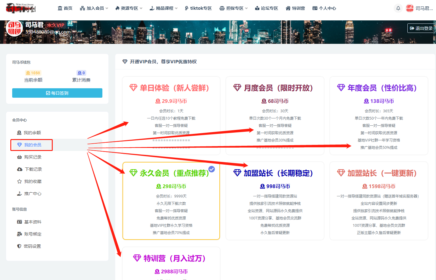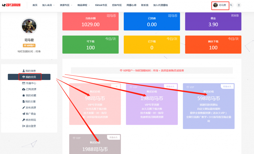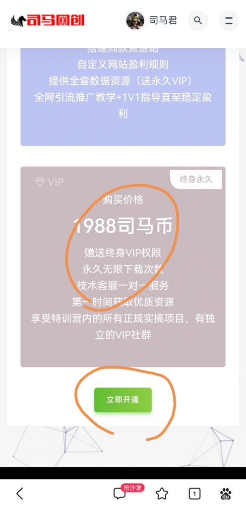 如何加入司马网创基地VIP年度会员、永久会员、加盟站长以及特训营(电脑手机流程)