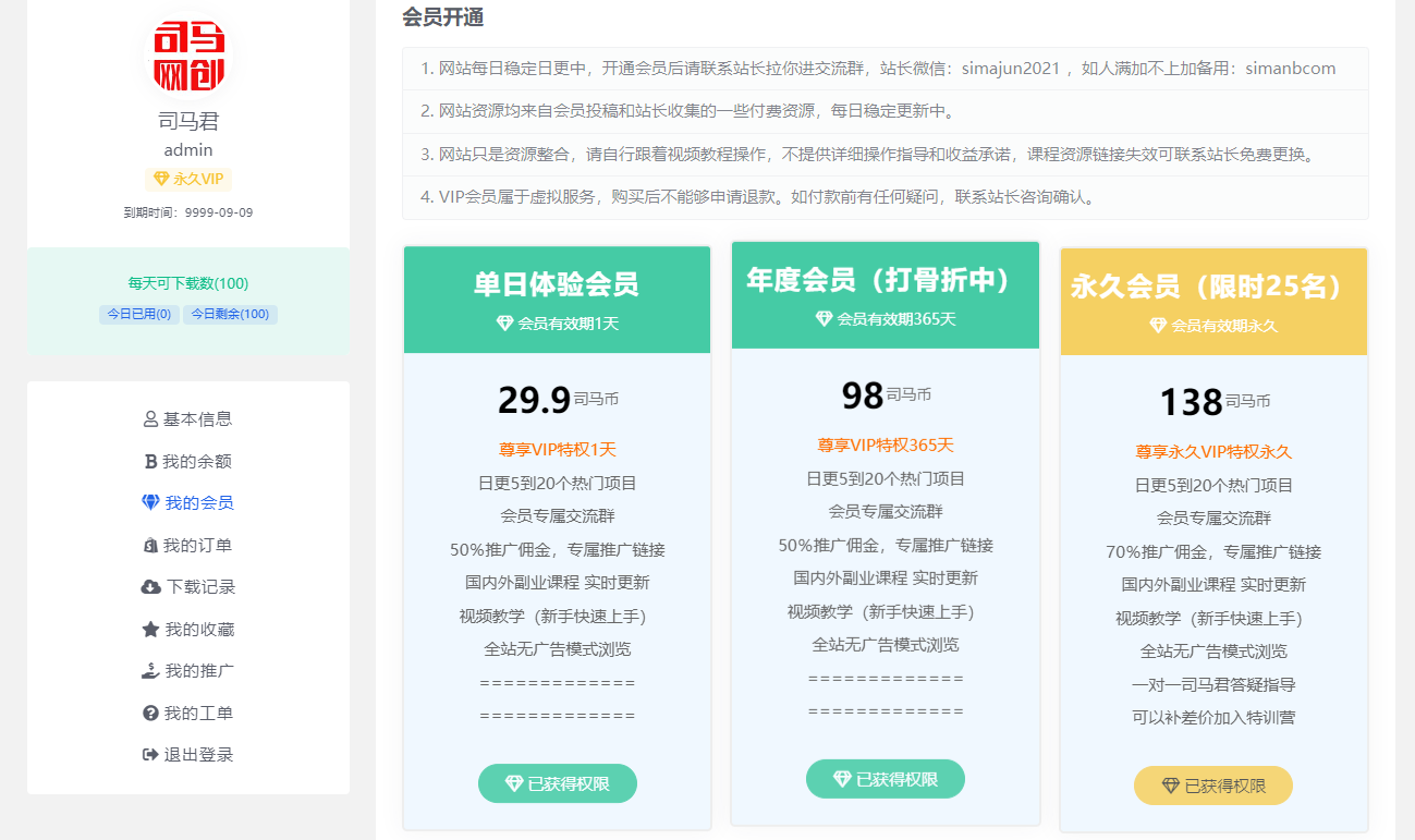 另外,加入司马网创基地年会员的,均可联系司马君加入司马网创基地VIP社群获取更多项目资讯和同伴交流分享!提升自己!